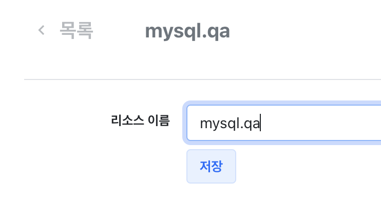 관리자 > 리소스 메뉴에서 기존 리소스 이름을 확인해주세요. (e.g. mysql.qa)
